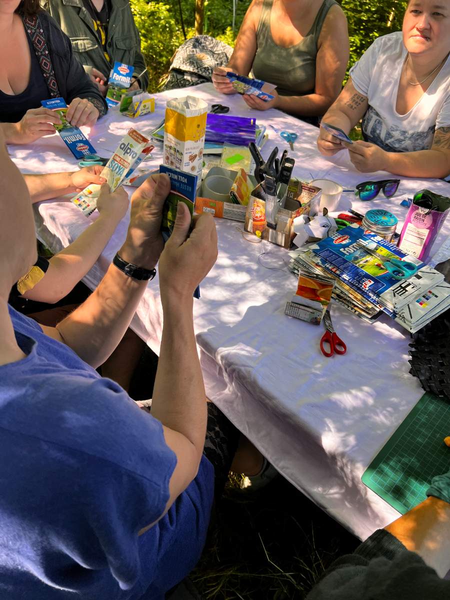 Aus Tetra-Saft-Packerln kannst du deine eigene Geldbörse anfertigen - wer mag auch mit Collage aus bunten Papierschnipseln drauf. Kleine, funktionale Kunstwerke können entstehen oder einfach ein funktionaler Gebrauchsgegenstand aus etwas, das sonst im Mist landet.